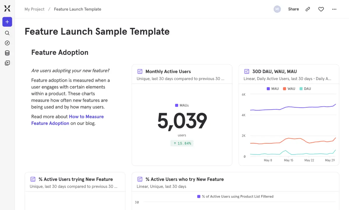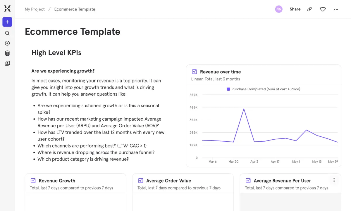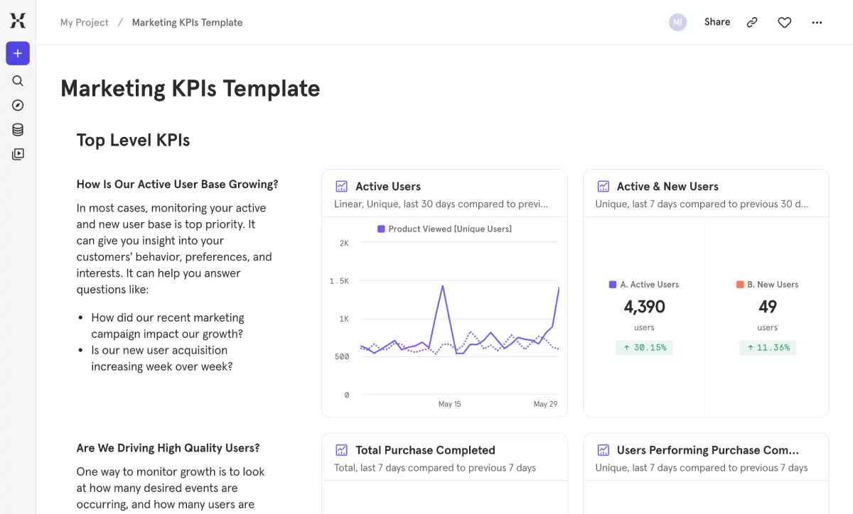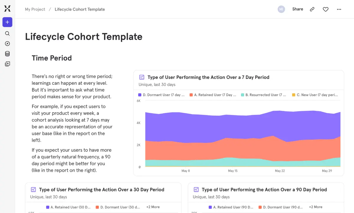 Foundational views to monitor product health, user retention, and core growth metrics at a glance.